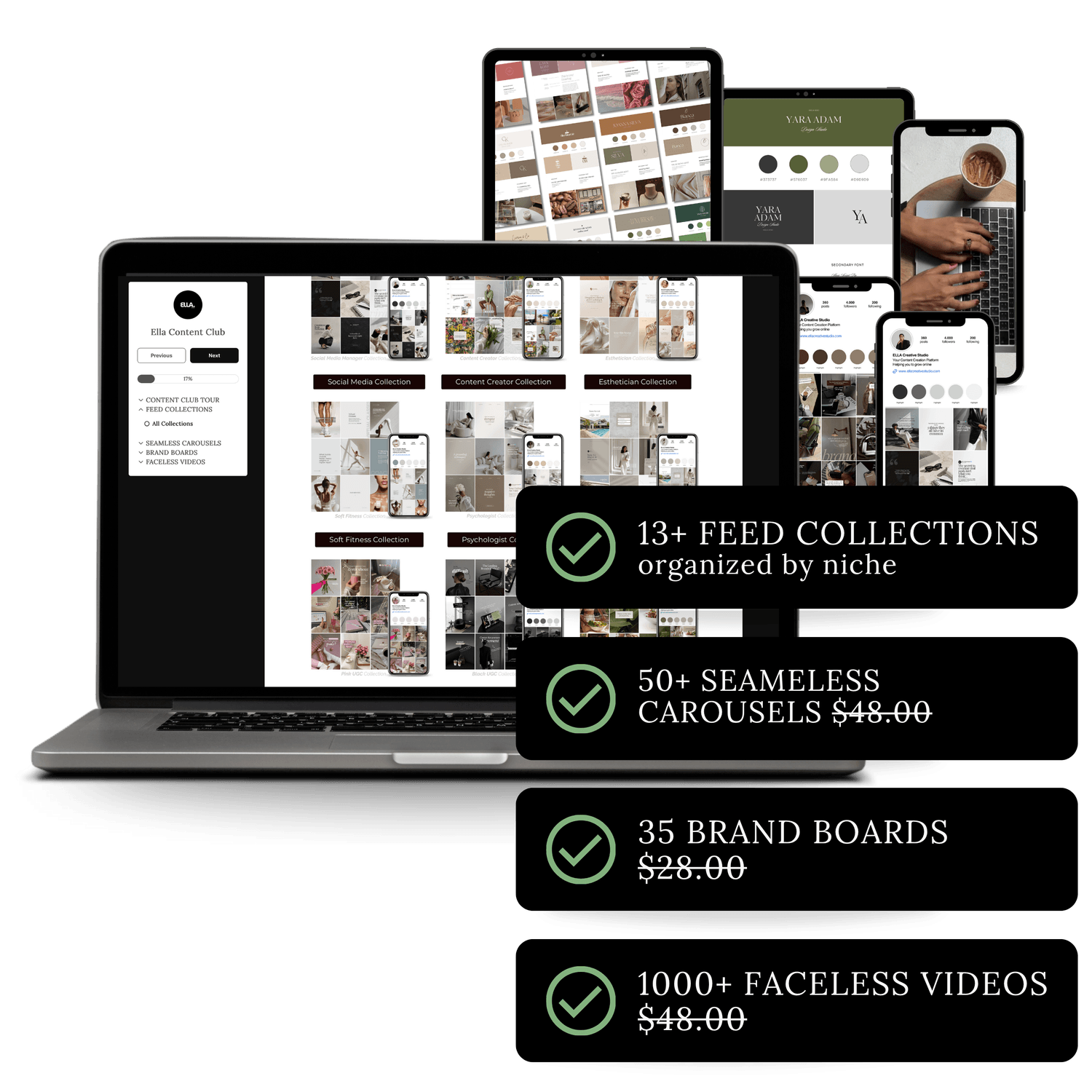 1000+ templates, faceless videos, seamless carousels and brand boards designed to save you hours and attract clients.